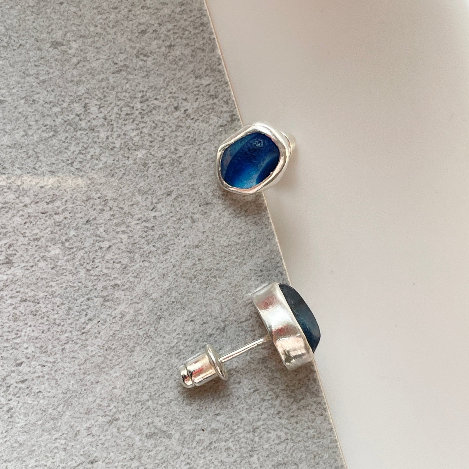 Blue Sea Glass Studs