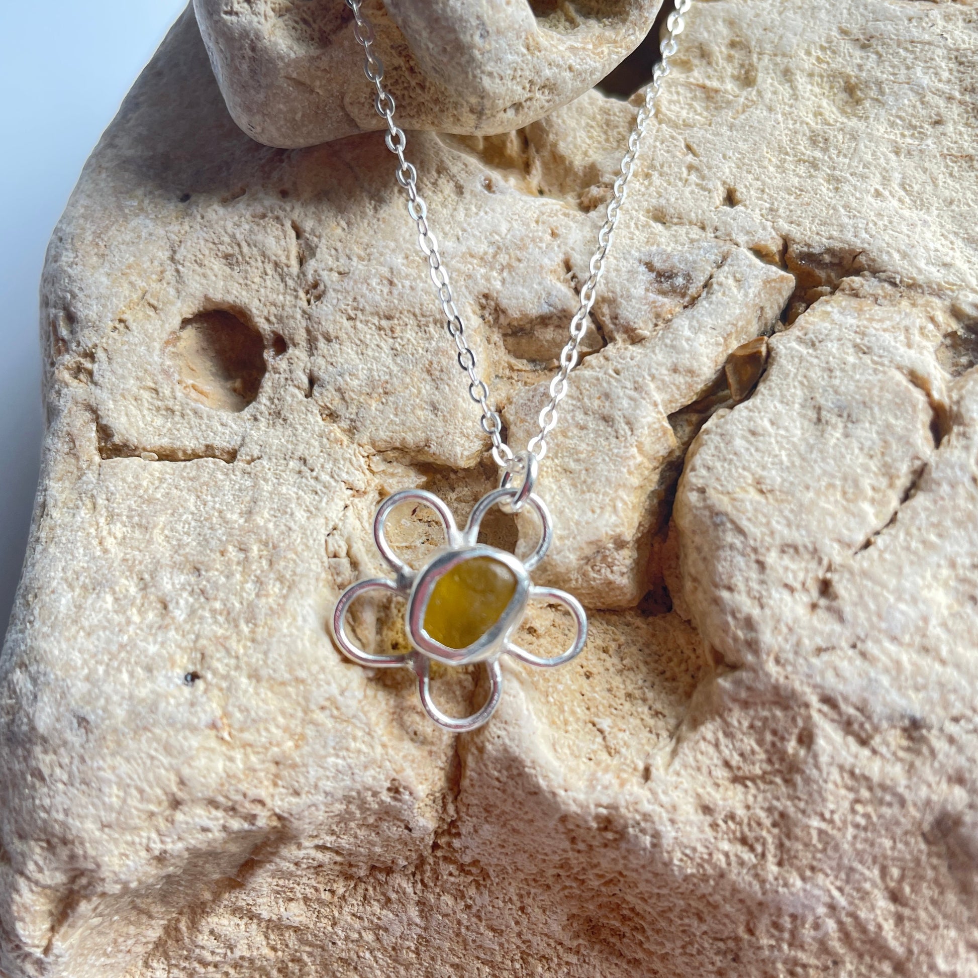 The sea glass used in the necklace was carefully hand collected from beaches in North East England.