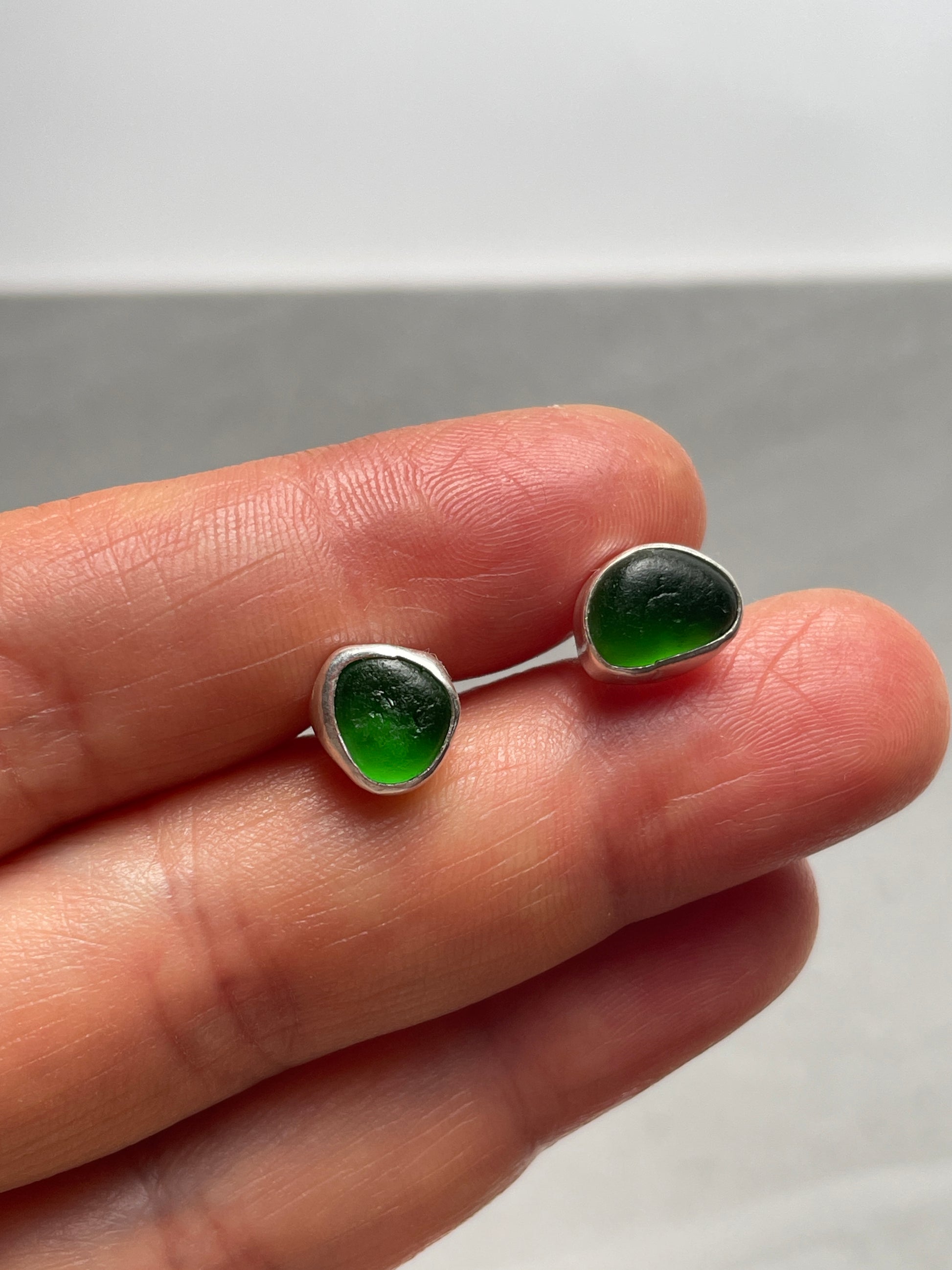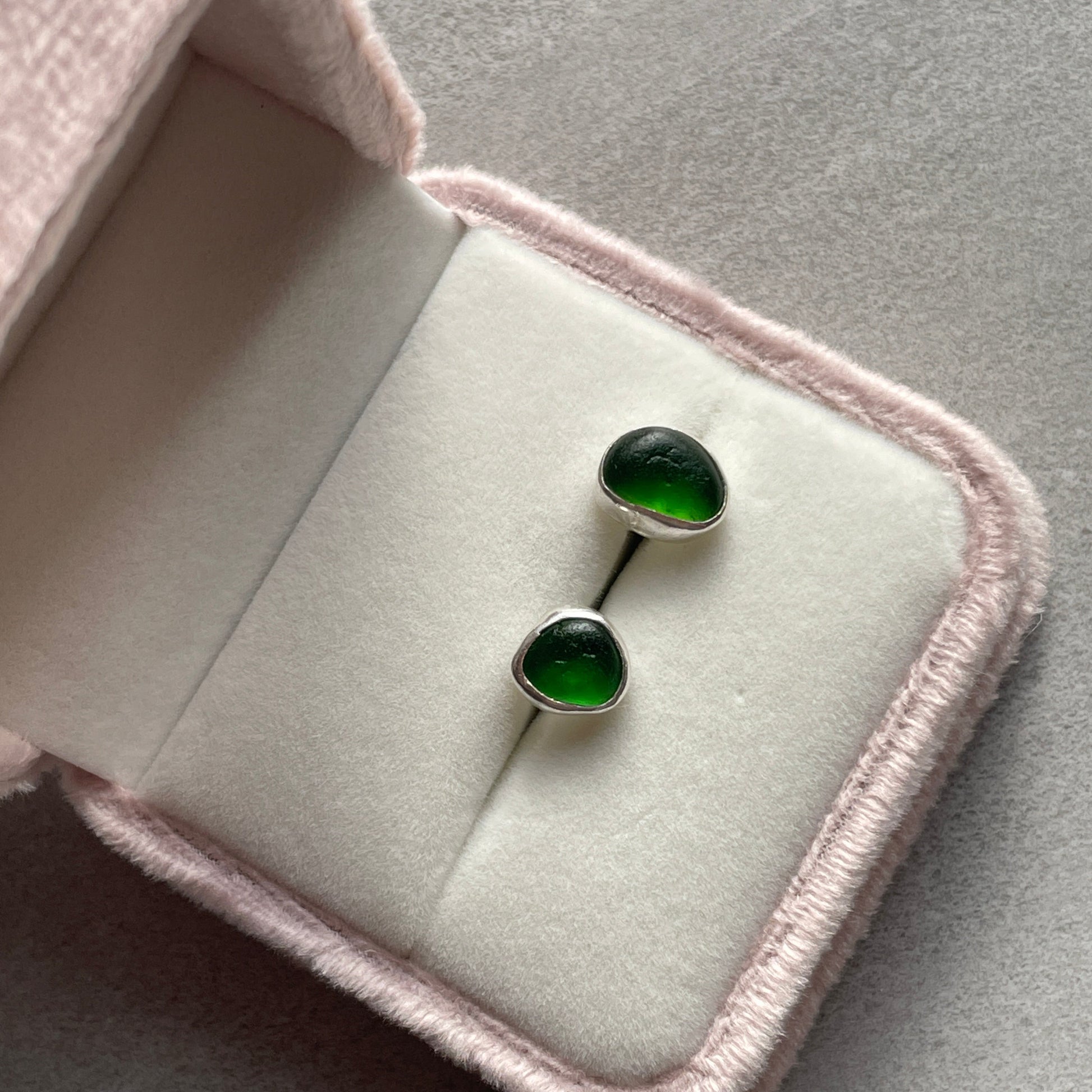 These sea glass studs are handmade from 100% recycled sterling silver, each piece of sea glass is unique making these earrings one of a kind perfect for everyday wear.