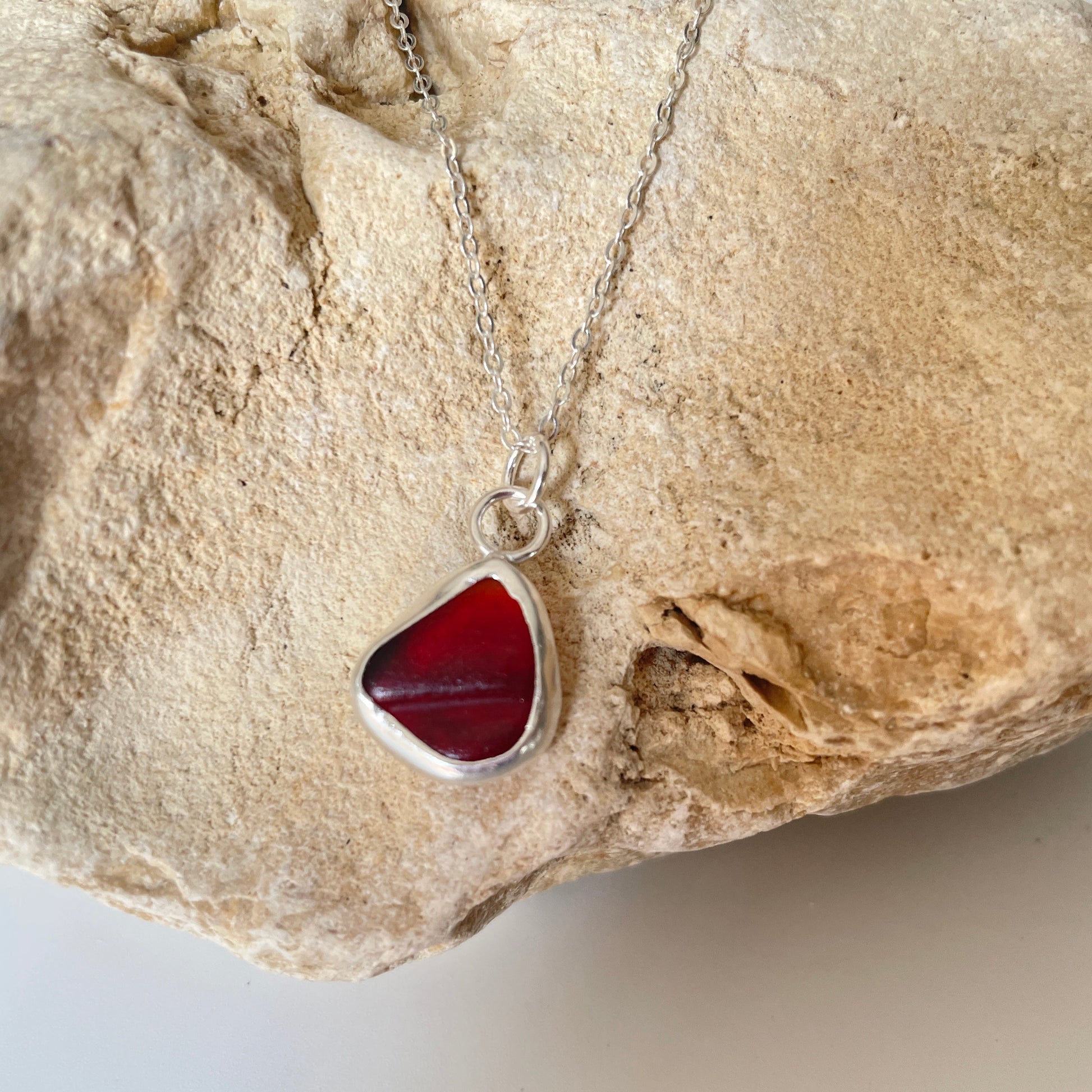The sea glass used in the necklace was carefully hand collected from beaches in North East England.