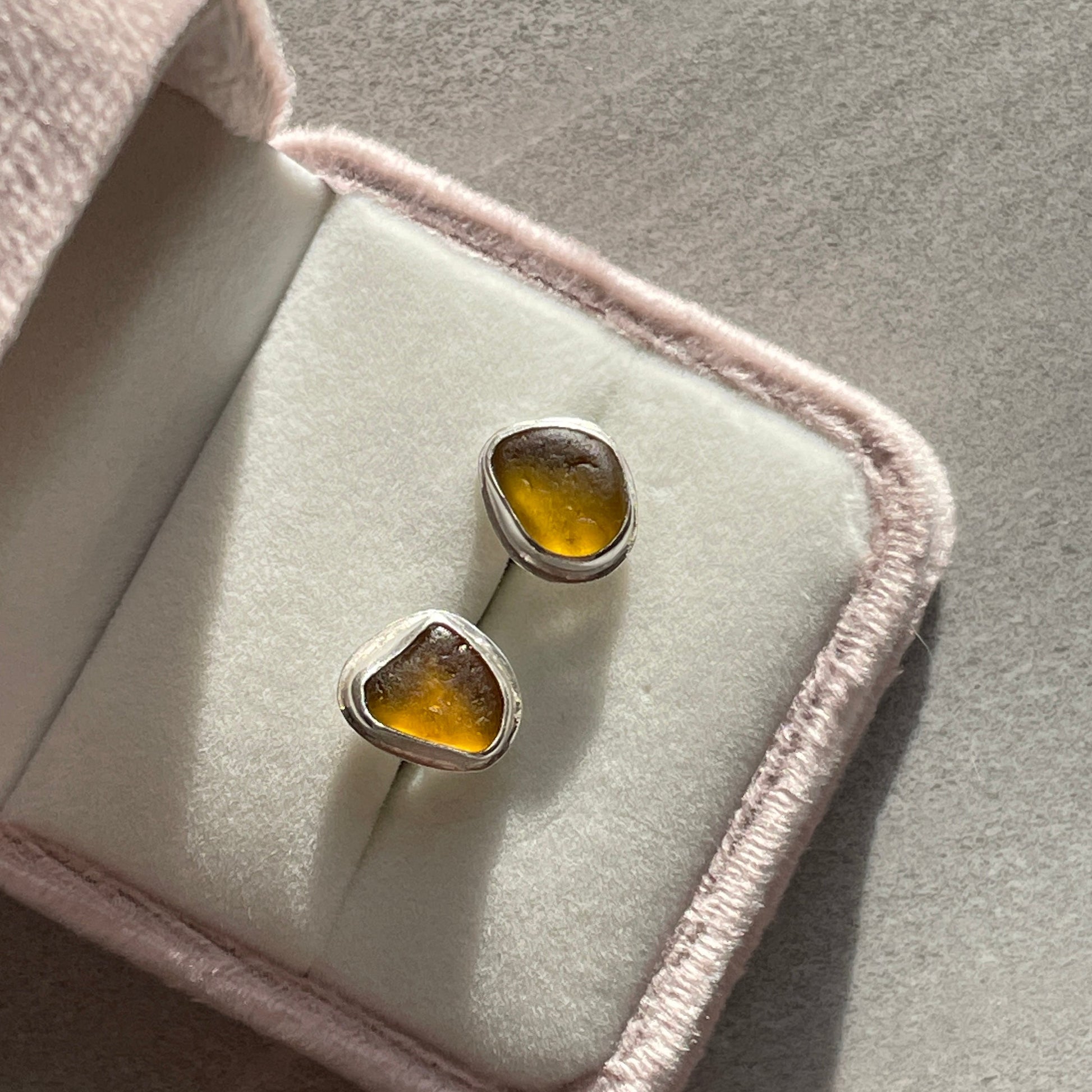 These sea glass studs are handmade from 100% recycled sterling silver, each piece of sea glass is unique making these earrings one of a kind perfect for everyday wear.